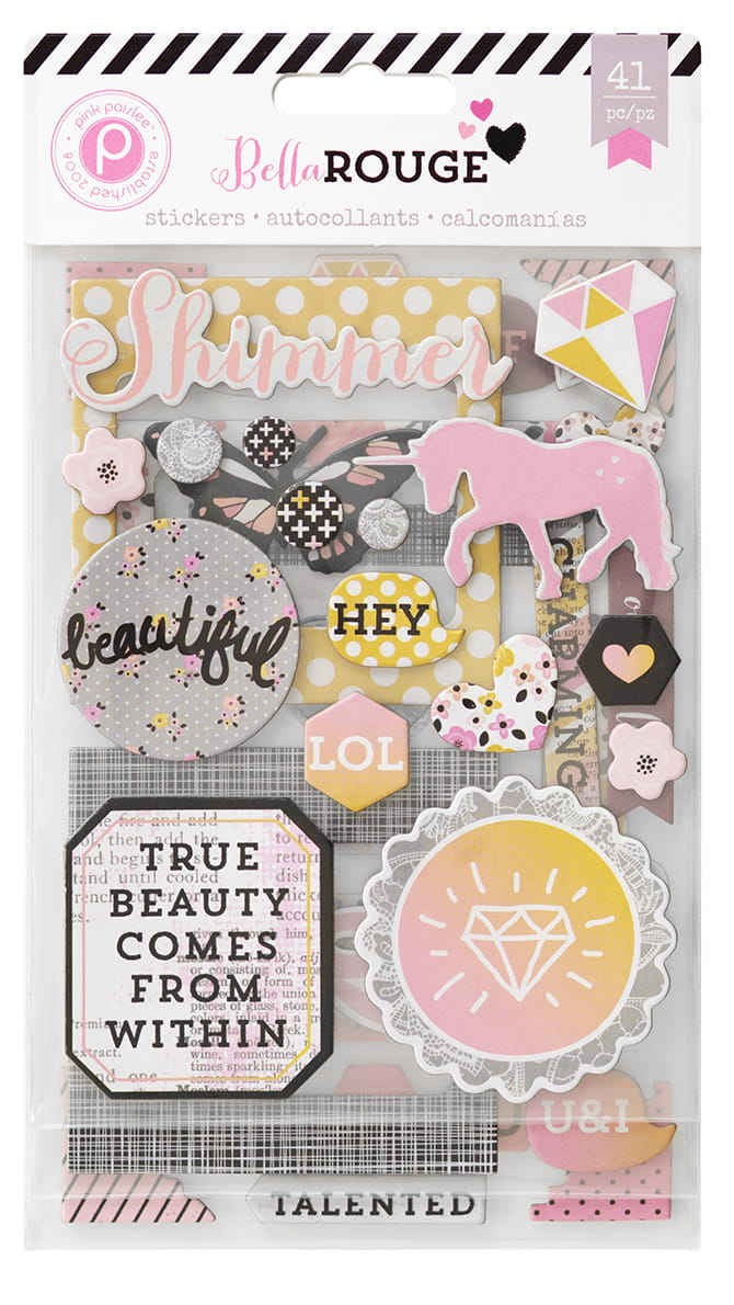 Zestaw zawiera 41 sztuk wycinanek tekturowych kompatybilnych z papierami z kolekcji Bella Rouge.