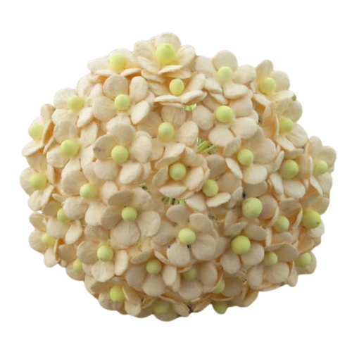 Kwiatki wykonane są ręcznie z wysokiej jakości papieru morwowego.Średnica ok.10mm.100 sztuk.