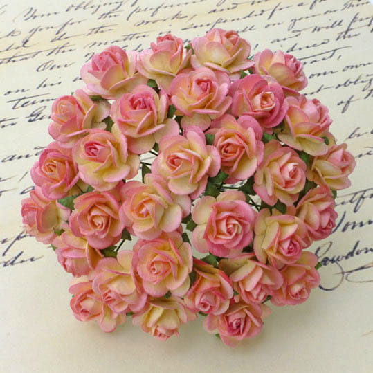 Kwiaty Róże 25mm różowo-champanski 10szt.