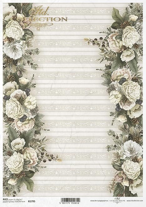 Papier ryżowy o wym.A4.Papier ryżowy jest podstawowym produktem używanym w technice decoupagu.Ma bardzo trwałe barwy dzieki specjalnej technice nadruku.Kolory nie blakną pod wpływem światła.