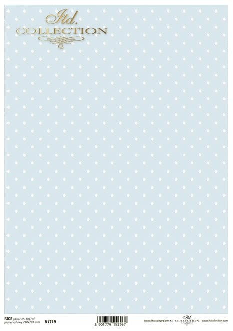 Papier ryżowy o wym.A4.Papier ryżowy jest podstawowym produktem używanym w technice decoupagu.Ma bardzo trwałe barwy dzieki specjalnej technice nadruku.Kolory nie blakną pod wpływem światła.