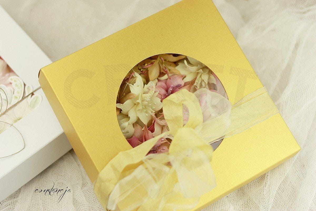 Gramatura: 300g/m2, papier kremowy z delikatną fakturą Wymiary wewnętrzne spodu: 16x16cm, wysokość 4cm