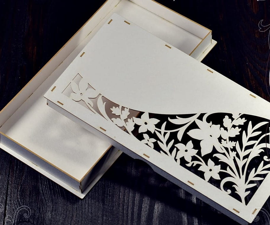 Pudełko pasuje zarówno na czekoladę oraz na kartkę w formacie DL.