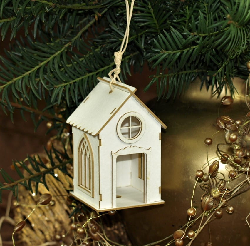 Wykonany z beermaty o grubości 1,5mm.Świetna dekoracja okna, choinki lub stroika albo samodzielnie stojąca ozdoba.W podstawie domku jest otwór który umożliwi założenie ozdoby na światełko ledowe .