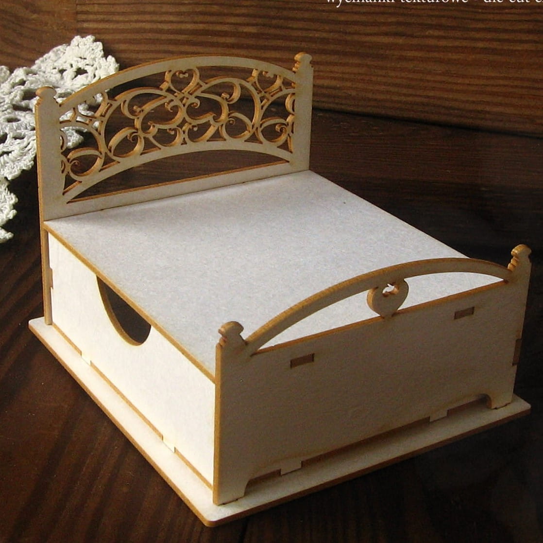 Wykonane z beermaty.Wym.wys.6,3cm x szer.7,5cm x dług.8,3cm.Wycinanki z beermaty można kolorować tuszem, farbkami, kredkami.Mozna również po zrobieniu podkładu z tuszu, posypać proszkiem do embossingu i wypalić nagrzewnicą.Do szufladki możemy włożyć biżuterię, banknoty lub inne drobne prezenty.