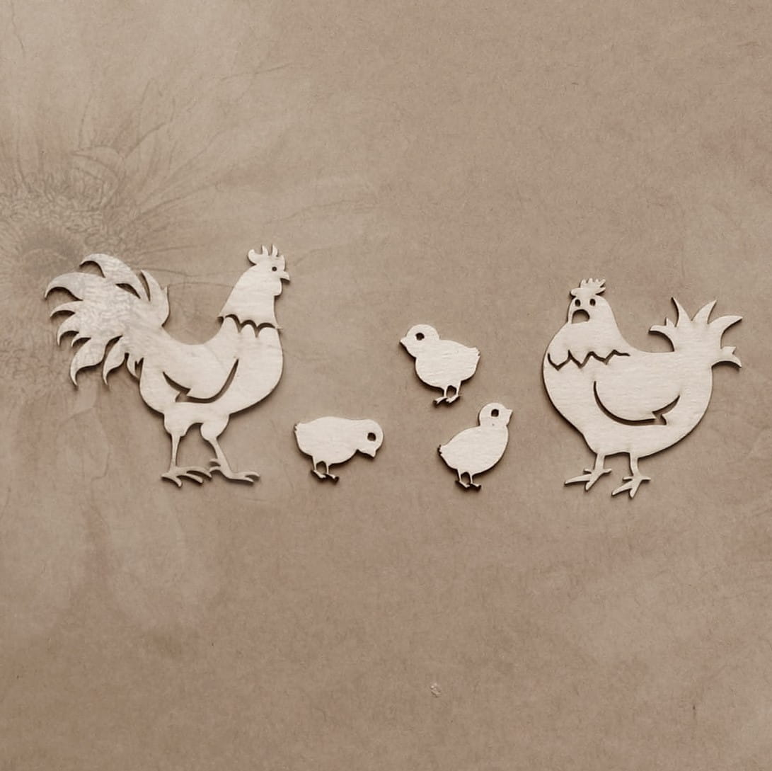 Wym.koguta 5cm x 5cm, kurczaczki 1,5cm x 1,8cm.Wykonane z beermaty.