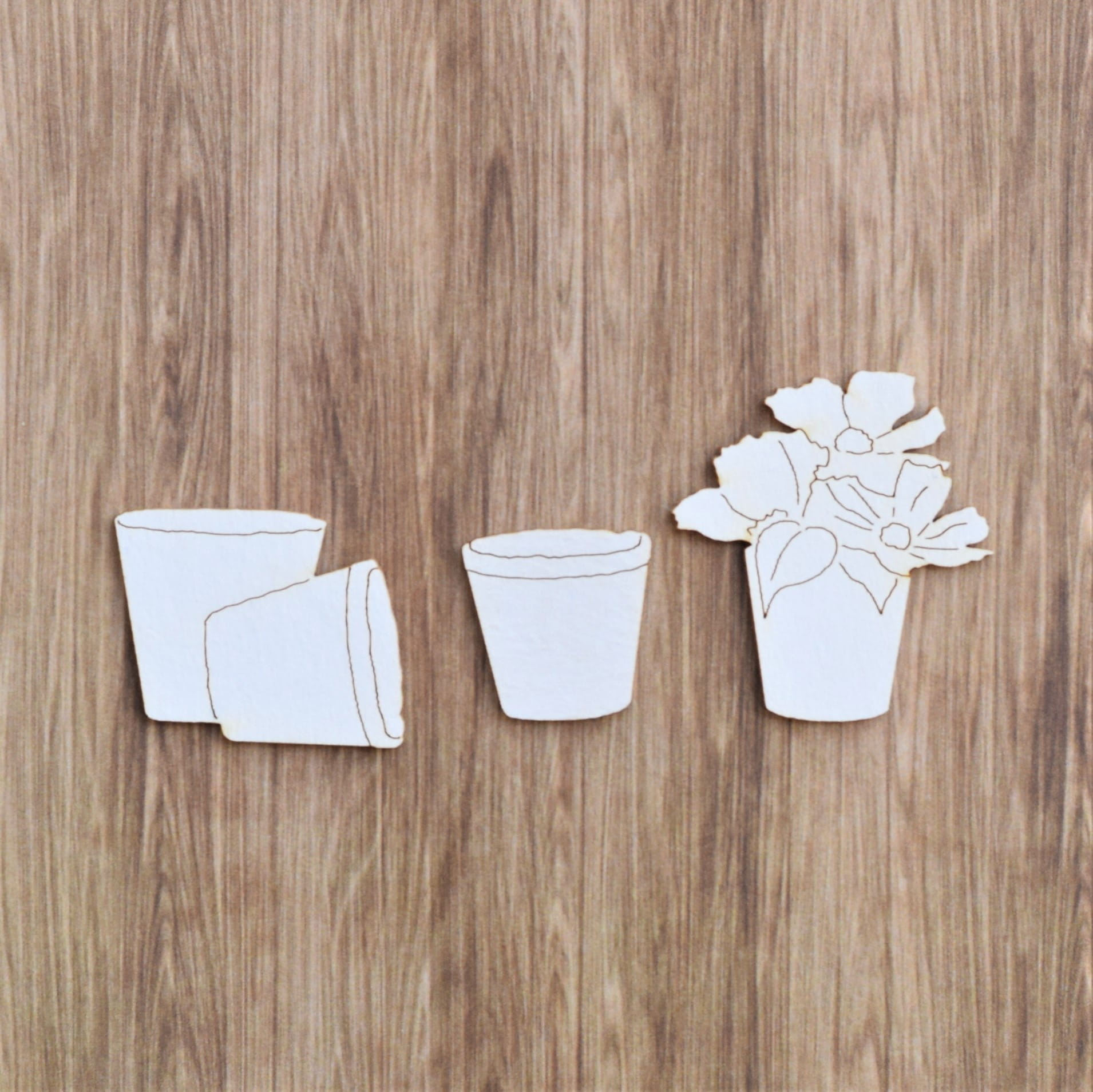 Zestaw 3 sztuk tekturek.Doniczka z kwiatkiem: 3,7cm x4cm.