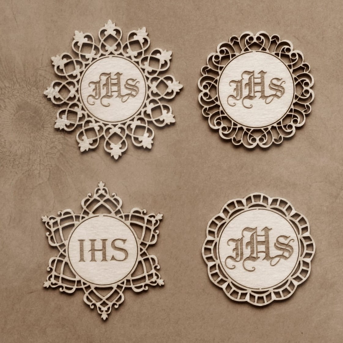 Wykonane z tekturki beermat, Wym. śr. ok. 5,0 cm, 4 szt.