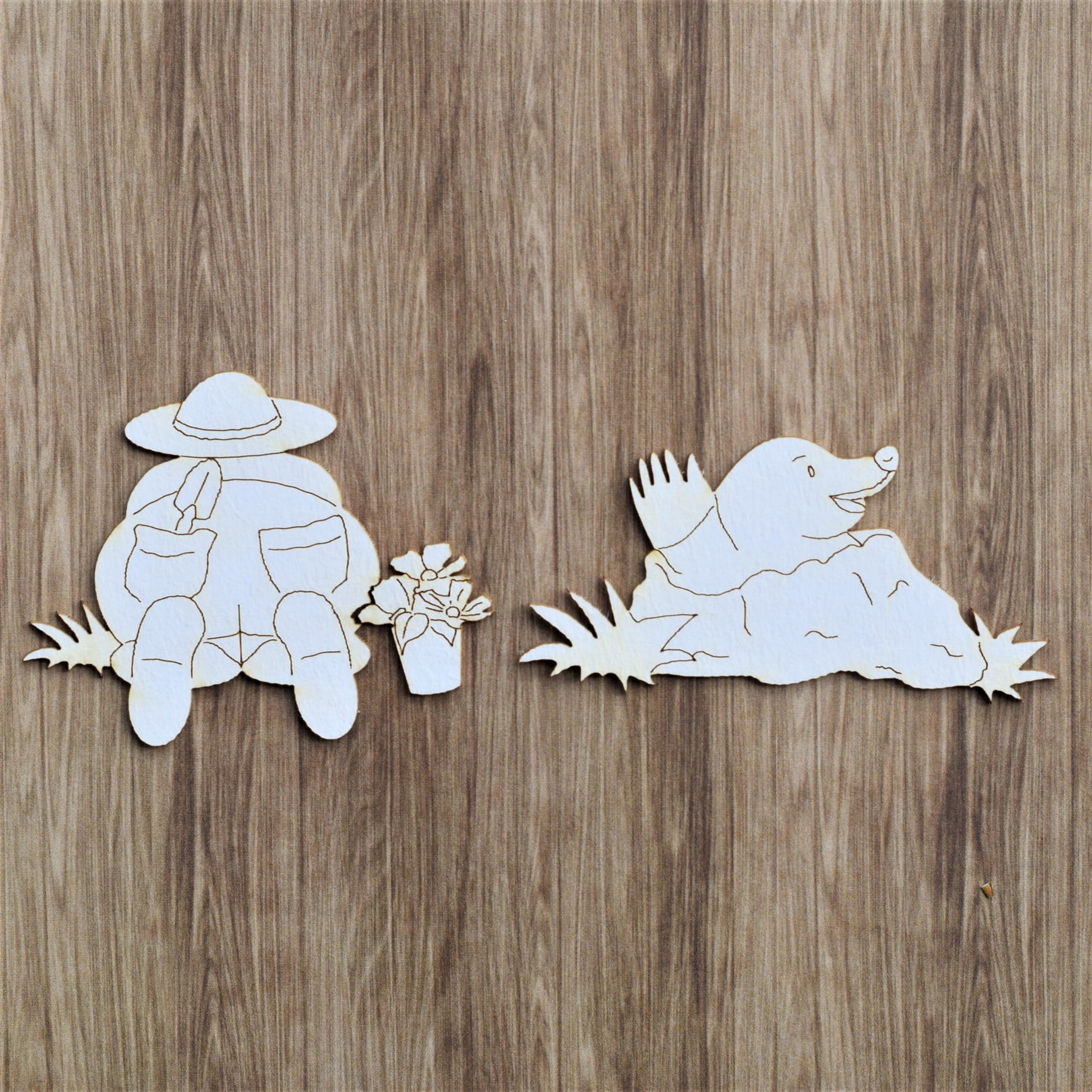 Zestaw 2 sztuk tekturek o wym. Krecik 6,1cm x 3,0cm.Działkowicz 6,4cm x 5cm.