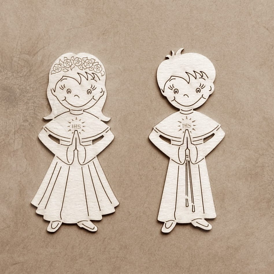 Wykonane z tekturki beermat, Wym. 1 postaci 3,0x7,0 cm.