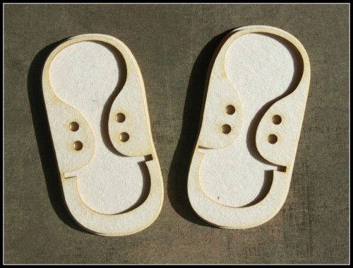Wykonane z beermaty o grubości 1,2mm.Wym.2,9cm x 5,8cm.Podeszwy są osobno i troche wieksze niz góry bucików.