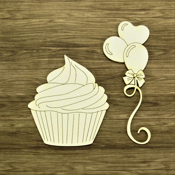 Tekturka wycięta w beermacie o grubości 1,5mm.Wym.baloników 28mm x 70mm ; babeczki :46 x 51.