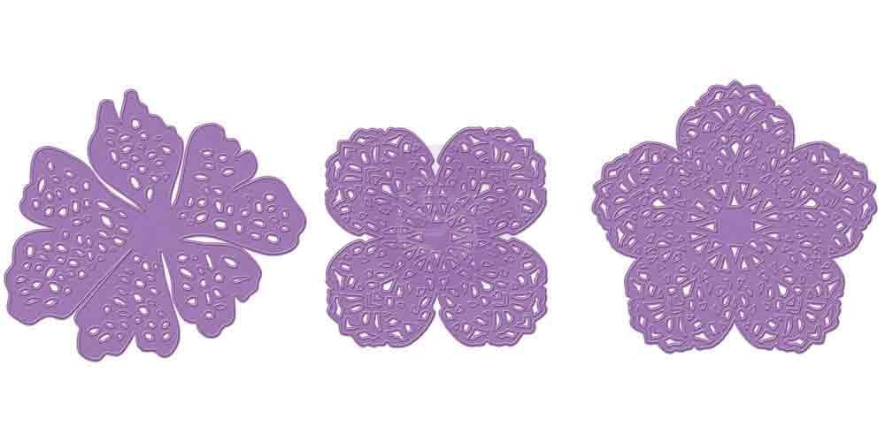 Wykrojniki metalowe - 3 sztuki.Średnica kwiatka z lewej strony 7cm x 6cm; środkowego 6cm; 6,5cm.